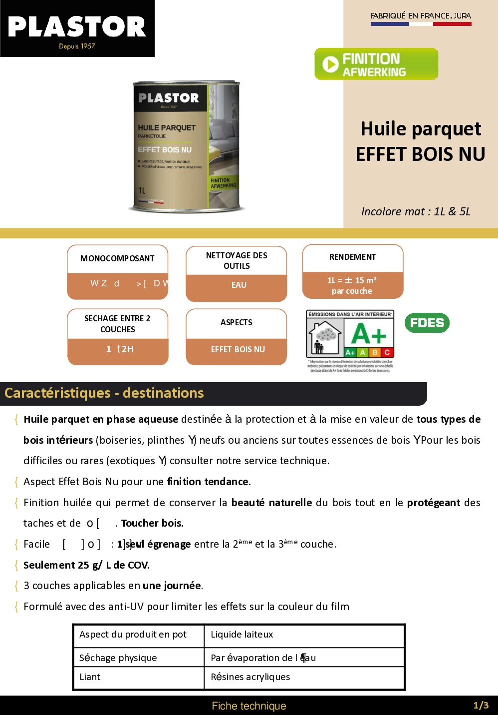 Fiche technique huile effet bois nu