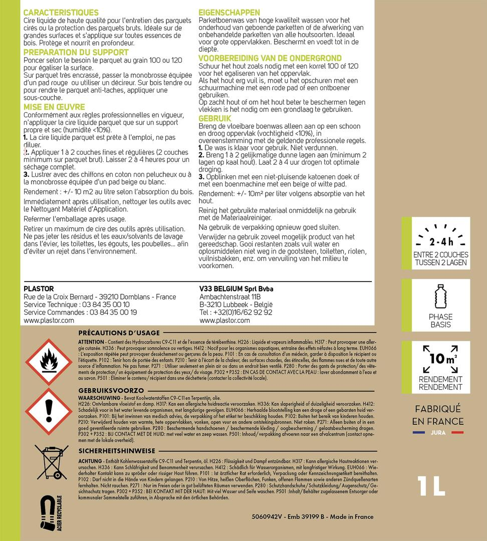 • Convient également pour la mise en cire des parquets bruts.